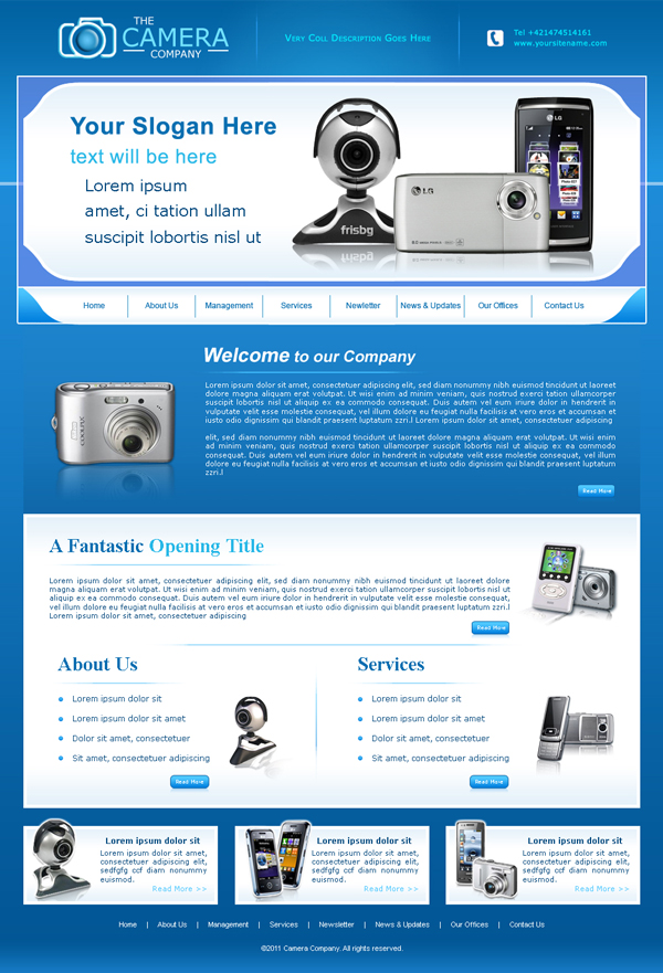 In Layout, I have designed websites layouts with options for different companies services, marketing, business advertisements and personal clients by using Adobe Photoshop.